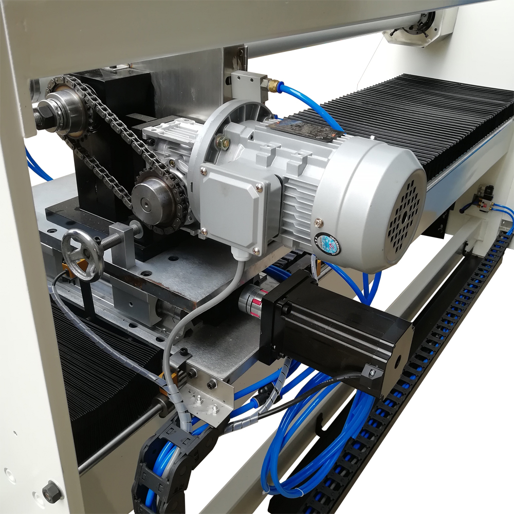 2. 電機控制系統(tǒng)為PLC可程式控制器,同軸中可設定2種尺寸,電腦于切割時自動調整切割寬度